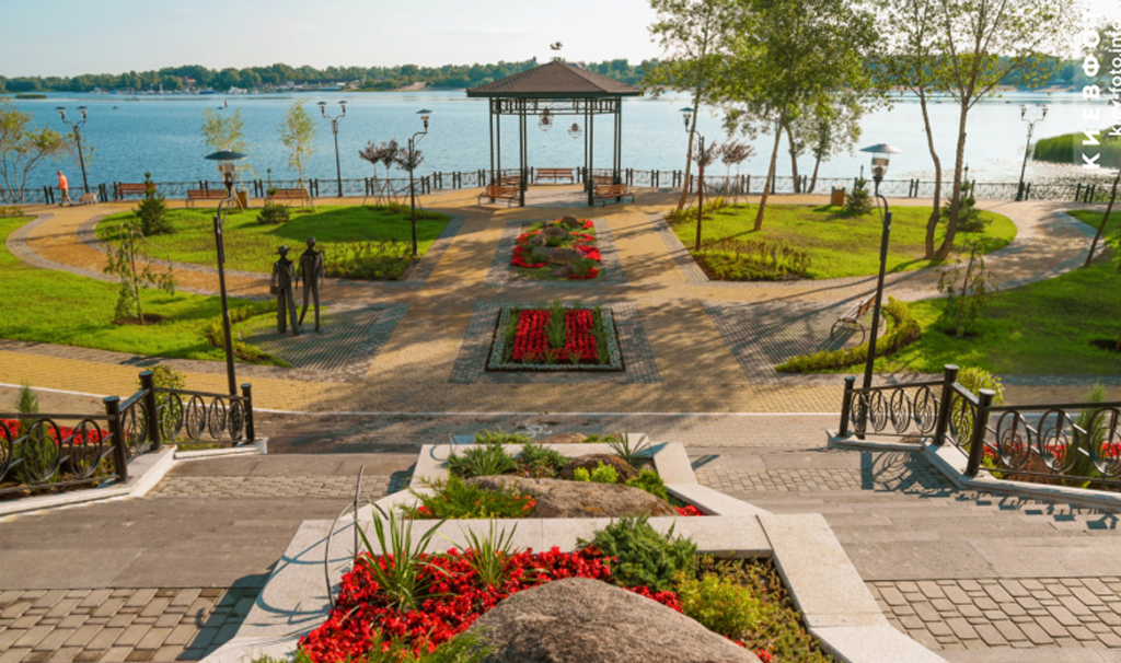 • Тут є багато тематичних зон: японський сад, тюльпанові поля, панорамний краєвид на Дніпро.
